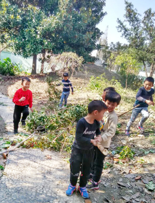 今天我劳动 来源:九龙幼儿园 作者:王浩伟 发布时间:2017-11-01 浏览次数: 次 【字体:小 大】 10月31日上午,九龙幼儿园的小朋友们在老师的带领下来到小树林收拾前一天师傅修剪下来树枝和落叶。孩子们在保安师傅的启发下自主结伴,用大树条当做小拖车,搭上小树枝,一起往外搬运,干得兴高采烈,这个说:“我的树枝像小枪。”那个说:“我的树枝像花伞。”老师们说:“大自然是孩子们的活教材,让他们在劳动中成长。” 分享到: 【打印正文】