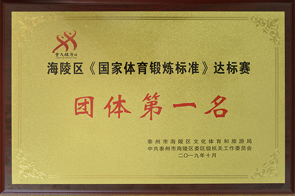10月19日,海陵区文化体育和旅游局、机关工委联合举办 “皇仕堡杯”《国家体育锻炼标准》达标赛,全区各乡镇、街道、各委办局参赛,海陵区教育局代表队夺得比赛团体第一名。