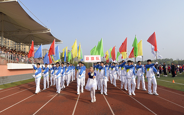 开幕式上,号鼓队、鲜花队、裁判员队、各学校运动员队、彩旗队方阵高呼着口号,在国旗队方阵的引领下,伴随着雄壮的运动员进行曲和解说员清脆宏亮的解说,依次健步通过主席台。