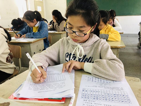 书法比赛现场,选手们端坐桌前,在规定时间内按照例文式样用心书写每一个笔画、每一个汉字,所写作品横平竖直,笔画流畅,美观得体,表现出了良好的书写习惯。经评选,优秀作品将在校园内进行展览,以促进全校同学养成良好的书写习惯,不断提升书写水平。