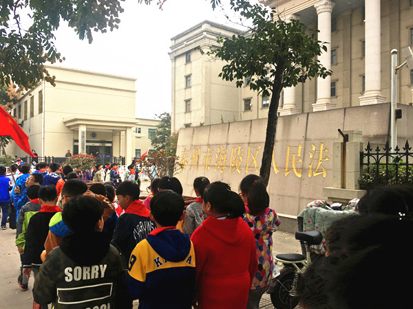 城东小学研学旅行走进人民法院 来源: 作者:汪胜盛 发布时间:2017-11-07 浏览次数: 次 【字体:小 大】 11月3日下午,城东小学经东校区开展了研学旅行“走进法院”活动,孩子们带着满心好奇,来到了海陵区人民法院。孩子们参观了法院的立案厅,第一次旁听了一起青少年打架斗殴案件,严格的审判程序,庄重严肃的法庭气氛,被告人的悔不当初,让在场的每位学生都感受到法律的威严。随后,孩子们在工作人员的带领下参观了诉讼服务中心、执行指挥中心,了解了更多的法院工作流程。活动结束,同学们都表示要做一名知法、懂法、守法的好学生。 分享到: 【打印正文】 相关内容