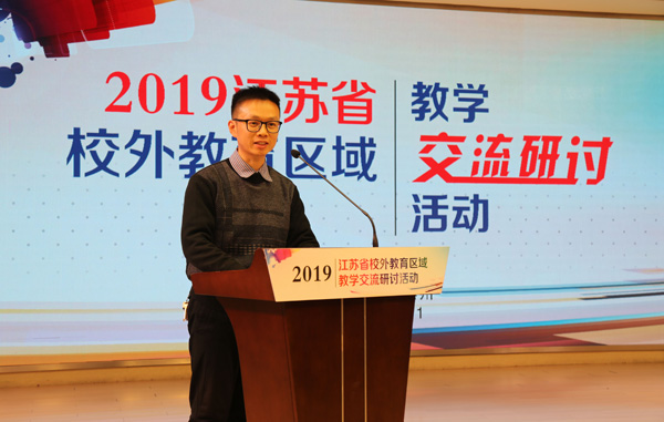 江苏省校外教育专业委员会副理事长兼秘书长、江苏省妇女儿童活动中心主任戴锦高做了总结发言,戴锦高高度肯定了这三节课,表示举办这样的教学研讨活动,让校外教育同行有了相互了解学习的机会。他提出校外教育的意义是让艺术给孩子们带来愉悦与快乐;校外教育的特点是百花齐放,各具特色,让孩子们在实践活动中感悟体会对生活的热爱、对家乡的赞美、对美的追求。他希望校外教育同仁共同努力,促进学科之间的相互融合,建构共同、立体、发展的学生核心素养体系,立德树人,助力孩子们综合素质的不断提升。