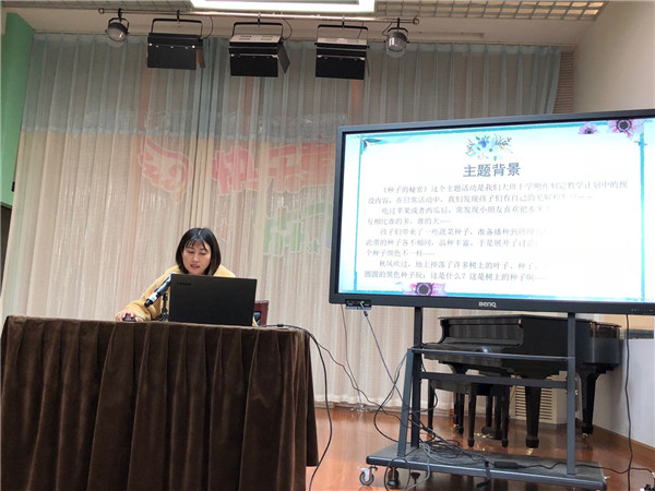 活动开始,朱丽莎老师、刘芸老师以《你好,小城》和《种子的秘密》主题为例,从主题思路、主题目标、实施路径、区域游戏和成果反思五个方面进行了介绍,给各位老师开展主题活动提供了思路。接着孙畅老师以课程故事的形式分享了幼儿与钱币的故事,李静老师则以集体活动的形式展示幼儿探索种子的过程。