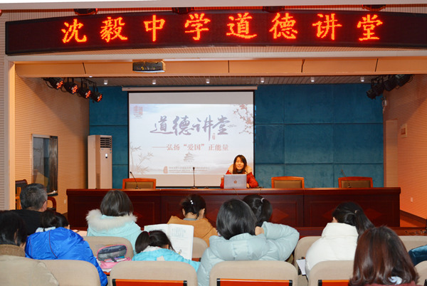 12月4日下午,沈毅中学举办了以“弘扬爱国正能量”为主题的道德讲堂活动,全体教职工参加了此次活动。