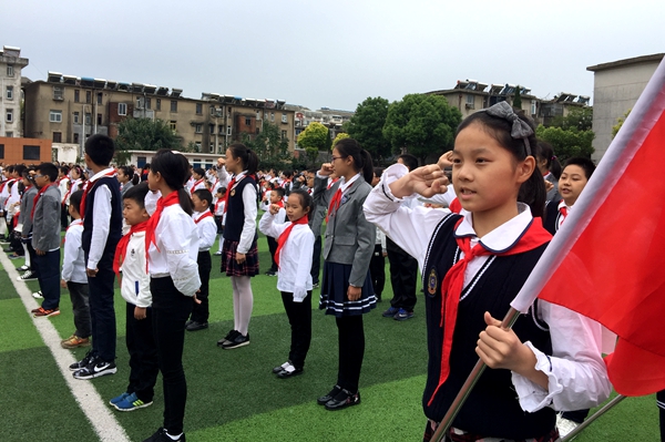 副校长钱桂红介绍,学校一直把加强未成年人“八礼四仪”养成教育作为践行社会主义核心价值观的有效抓手和重要载体,在氛围营造、形式创新、机制完善上下功夫、求实效。学校以学生为主体,自我管理,紧扣“八礼”内容,创作朗朗上口的三字诀、四字诀,约束言行,提升文明素养;利用少先队活动课和国学晨会课作为养成教育的主阵地,将“八礼”教育内化于心,外化于形;积极探索学校、家庭、社会“三位一体”教育新途径,开展“小手拉大手”等活动,学生把良好的礼仪习惯带出校园,带进家庭,带向社会;在特殊节点开展“入学仪式”“入队仪式”“成长礼”“毕业礼”等极富仪式感的少先队活动,践行文明礼仪,促进学生品格提升。活动即教育,“一主体、两阵地、三联动、四仪式”培养了一批拥有书香味、阳光心、民族魂的文明小市民和时代好少年。