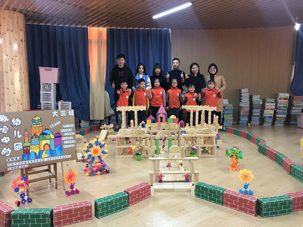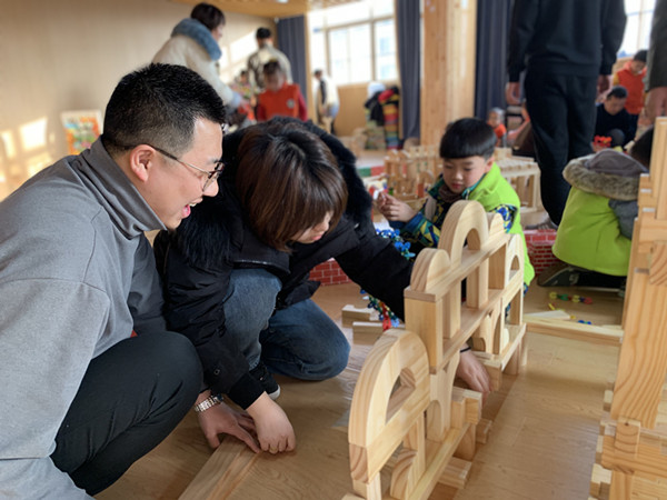 12月12日下午,泰州市城东幼儿园鼓楼园区开展首届大班亲子建构游戏比赛,40多名家长来园与孩子一起搭建“心中的幼儿园”。