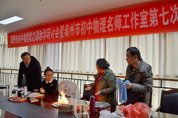 12月13日,泰州市初中物理常态课教学研讨会暨市、区初中物理名师工作室集体研修活动在泰州市海陵学校举行,来自靖江、泰兴、兴化、姜堰、高港、高新区等地的20多名物理教师参加活动。