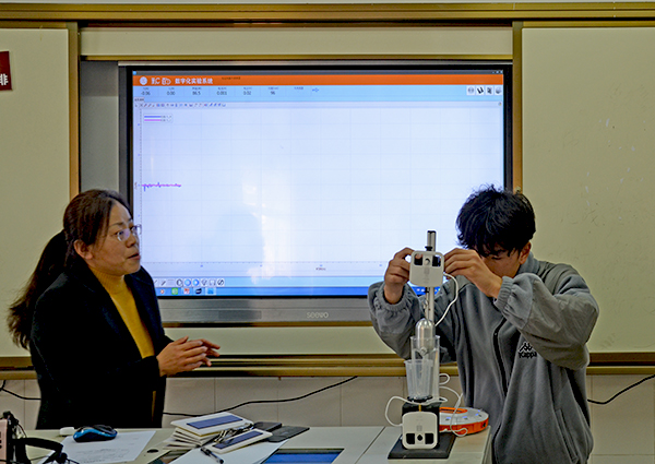 活动中,泰州实验中学的陈美琴老师和海陵学校的李勇老师各自上了《阿基米德原理》(复习课)、《磁体和磁场》两节课。陈老师运用数字传感器探究阿基米德原理,将力学感应器采集到的数据以图像形式展现出来,借助图像引导学生分析实验过程中的节点问题,生动、形象、直观地解决了教学难点。