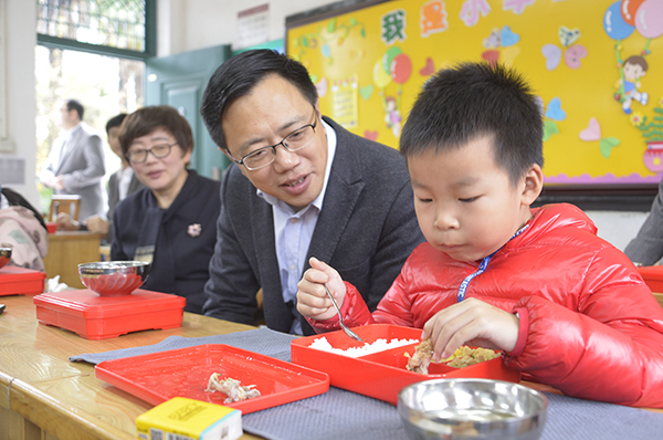 完善一套保障体系。一是责任保障。制订《关于做好中小学学生餐供应及食品安全工作的意见》,明确区级各有关部门的工作职责。二是经费保障。出台《公办学校配餐补助经费管理办法》,规范公办学校配餐补助经费使用行为,明确教师延时服务补助费用指导标准,累计发放近千万元,用于值班教师的补助。今年起,为配餐学生提供餐费补贴。三是制度保障。建立集中用餐陪餐制度,分管区长、职能部门局长、业务科室科长定期深入学校与学生共同用餐,每日安排学校校长、邀请家长代表陪餐,做好陪餐记录,收集食品安全与营养健康等方面的意见建议。