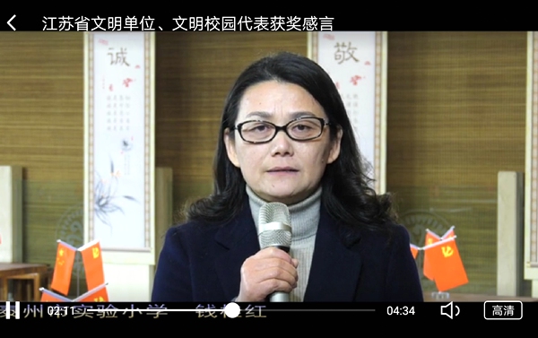 12月19日,省文明委在常州举行了“2016-2018年度江苏省文明行业、文明单位、文明校园评选结果发布仪式”,实验小学副校长钱桂红代表学校参加仪式并发表获奖感言。她说:“泰州市实验小学再次获得“江苏省文明校园”的光荣称号,是对学校长期坚持文明校园建设的肯定,是实小师生的共同荣誉。学校将以此次荣誉为新的起点,秉持“最是书香能致远”的校训,坚持“办适合的教育,教给学生一生有用的东西”的办学理念,努力培养“阳光心、书香味、民族魂的时代少年”,向着质量领先、管理规范、队伍一流、特色鲜明、品质卓越的高峰学校砥砺前行。”