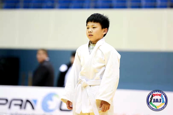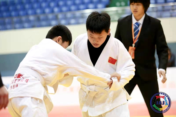 窦睿浩同学参加负59公斤级比赛,他抓住稍纵即逝的战机,发挥自身身高体重优势,一个漂亮的背摔动作做得干脆利索,以“一本”的成绩击败对手,毫无争议地夺得该项级别的金牌。