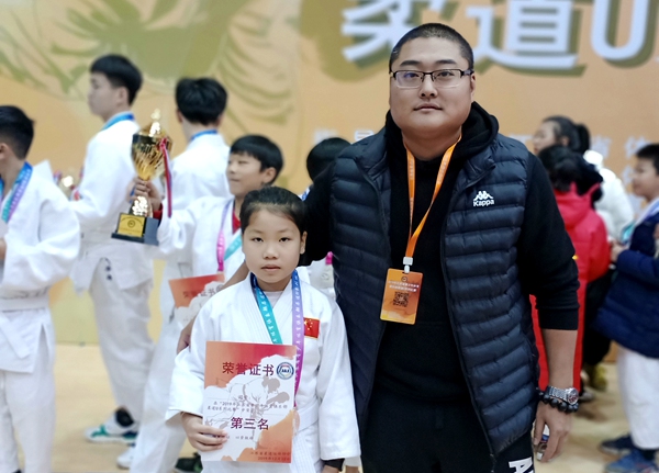 负34公斤级季军朱紫萱,个头不高,体重较轻,在比赛中没有优势可言,但凭着不放弃的信念,咬牙坚持比赛,获得了一枚宝贵的铜牌。