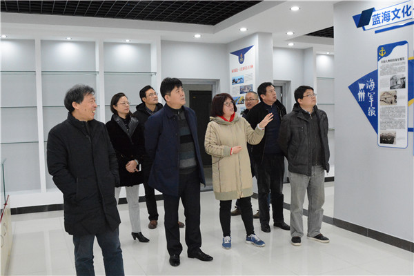 检查组专家听取了学校海军文化校本课程建设情况的介绍,认真阅读了学校新编国防海防教育校本教材《奋楫追梦正当时》。随后,专家组巡视校园,参观了军舰景观区、海军文化及史料展示馆和海军诞生地纪念分馆。专家组认为海军中学校园文化氛围浓厚、环境干净整洁,同时希望能进一步加强顶层设计,添加更多的海军元素,从精神文化、行为文化、课程文化这三个方面着手,把课程基地建设好,用文化凝聚人心、激发动力。