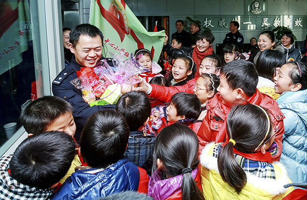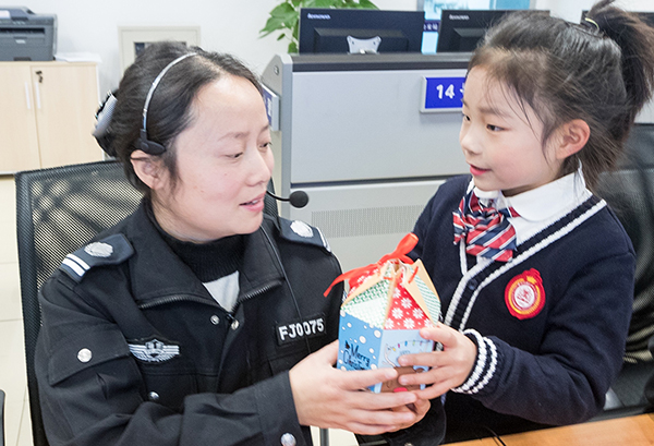 12月27日,城东中心小学春晖校区的14名少先队员来到泰州市公安局大数据指挥中心,为坚守在工作岗位上民警送上新年祝福!