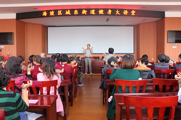 城东街道举办健身大讲堂活动 来源:城东街道社区教育学校 作者:吉桃林 发布时间:2017-11-10 浏览次数: 次 【字体:小 大】 11月9日下午,海陵区文体新局健身大讲堂活动走进城东街道,国家级体育指导员徐春老师为居民朋友们开设主题为“随时随地好健身”的科学健身知识讲座。徐春讲,大家跟学,大家充分感受到运动健身带来的乐趣。 分享到: 【打印正文】 相关内容