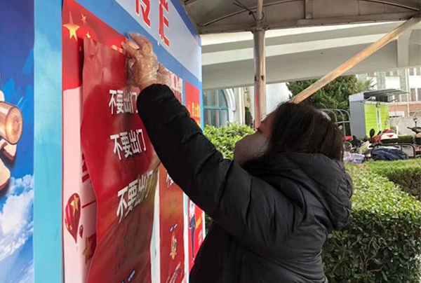 他们中有的人早晨五点多出门,面对空无一人的马路、乌黑黑的天空,坚持到防控点报到。他们戴着口罩、袖章,拿着宣传画,穿梭在社区的大街小巷,张贴抗疫知识海报,测量进出小区人员的体温。为不漏一个过卡之人,老师们担心上厕所别人忙不过来,水也不敢多喝。他们在冷风中吹了8个小时,向居民宣传普及防疫知识,消除居民的恐惧心理。