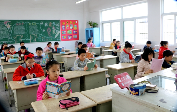 餐后,学校阅览室向学生开放,学生或游戏,或学习,老师在旁辅导。