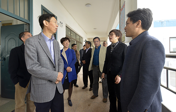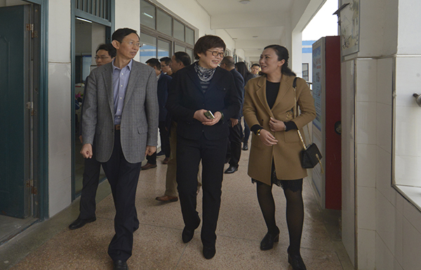 海陵区教育局局长凌华余带领其它学校的领导察看试点学校学生就餐运行情况。