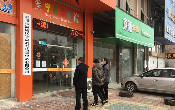 今日下午,海陵区效能办、教育局抽查了九龙镇、城西街道和华港镇的校外培训机构,抽查一看有没有按照疫情防控的要求停止线下培训;二看疫情防控的宣传工作有没有落实到位;三看《告家长书》有没有在醒目位置张贴。