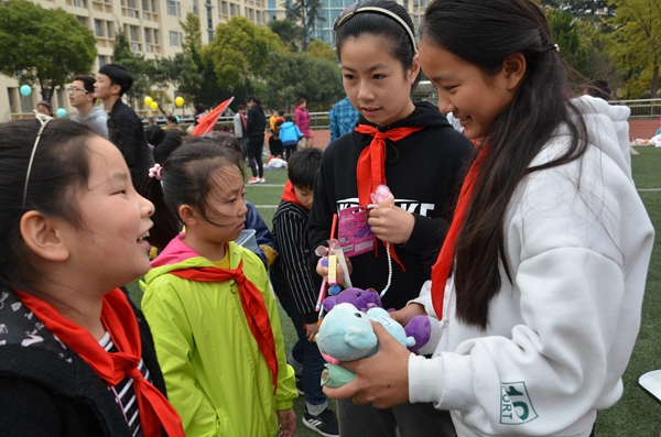 11月10日下午,海陵学校操场上“货摊”遍布,叫卖声此起彼伏, 一年一度的“金石榴”跳蚤市场再次开市。