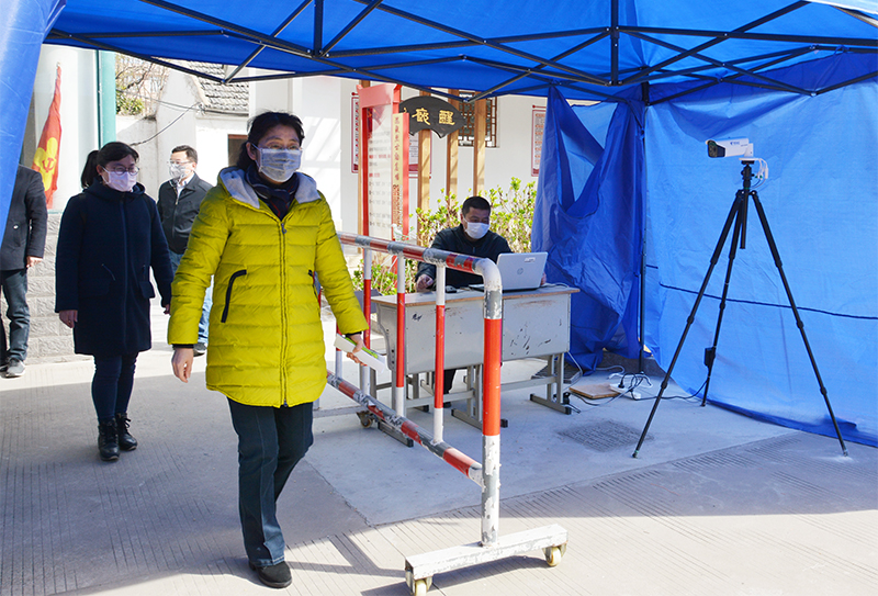 “兵马未动,粮草先行。”防疫物资的准备事关开学防疫工作的成败。“平常学生自由进校园,现在我们划出了三个入校通道,两路安装了红外线体温测量仪,另一路由两位老师持额温枪为学生测量体温。”泰州市实验小学校长丁正后向前来督导的孙群介绍学生入校的安排。