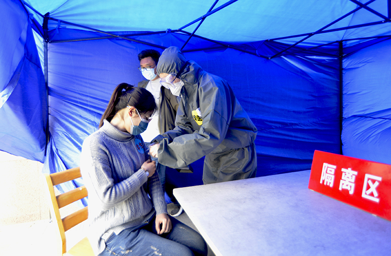 如果在开学后,老师发现某学生体温异常该如何操作呢?如果在校门口发现,执勤老师将其带到测温棚进行复测,确认发热后,由执勤教师带至隔离室并通报班主任和总值班,通知学生家长(如家长在外地等,则由对口医院医生)带至医院检查,现场登记。同时,消毒人员现场对测温棚及留观室进行消毒。
