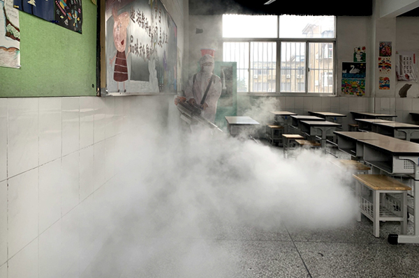 泰州市红十字会到校消毒,为开学提供卫生保障 来源:城东小学 作者:陈启琴 发布时间:2020-03-28 浏览次数: 次 【字体:小 大】 近日,泰州市应急救援队十多名队员来到海陵学校、实验小学、城东小学、市幼儿园等,对校园环境进行消毒。队员们身穿防护服,背着30多公斤重的消毒喷雾机,对教室、走廊、楼梯、厕所、各功能室、储物间、会议室及大礼堂等进行消毒作业,为即将开学提供卫生保障。 分享到: 【打印正文】 相关内容