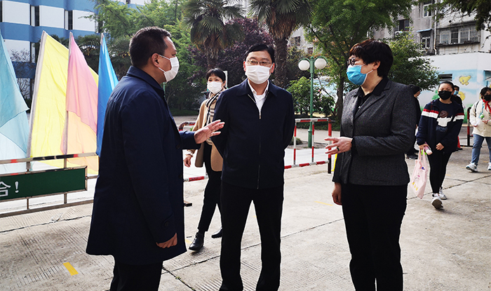 泰州市政府副秘书长全冬明在副区长孙佳玲,区委教育工委书记、教育局局长姜小军的陪同下走进校园督查复学工作。