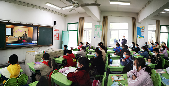 在教室的窗口,领导们与同学们一起观看了学校制作视频短片《复学第一课——我与祖国同呼吸》。片中,省特级教师姜建宇给同学们讲述全民勠力同心抗疫的故事,教导同学们要懂得自己的个人命运是与祖国的命运紧密相联的,一个中国人在任何时候,任何地点都不能忘记对祖国的感恩之心,报国之志。