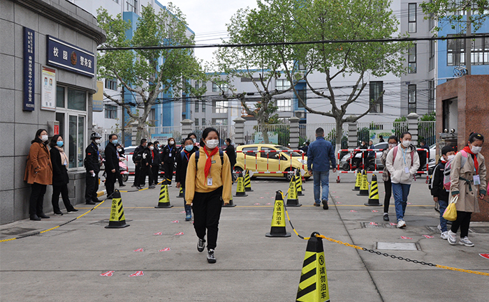 目前,海陵区小学四、五、六三个年级已于4月20日正式复学上课,清晨同学们胸挂“祥泰码”,戴着口罩,在老师的引导下从不同的年级通道次第走进校园,自觉间隔1米距离。孙佳玲到达民兴中英文学校时,正是初中学生午餐时间,同学们戴着口罩排着整齐的队伍安安静静地走进容纳千人的就餐大厅,一个班30多名学生只用一分钟左右的时间就全部领餐完毕,回到座位安静地就餐。用餐完毕,又排着整齐的队伍离开餐厅步入教室。无论是步行途中,还是就餐过程,都没有学生讲话、嬉笑。
