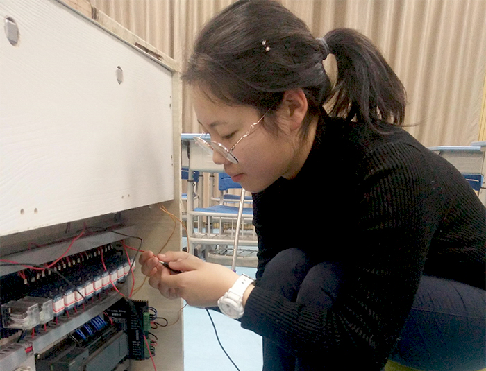 姜宇清同学在调试垃圾分拣系统