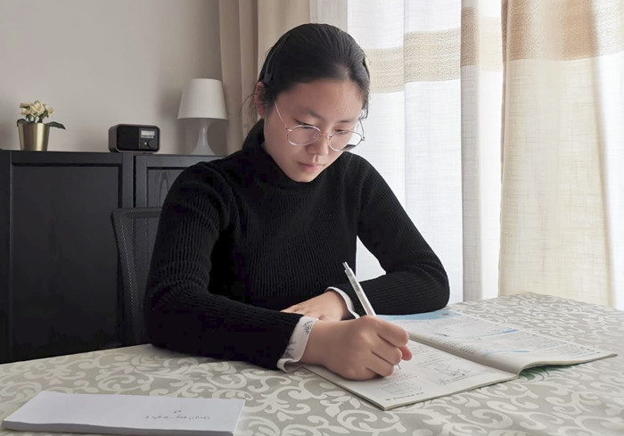 姜宇清同学在家中学习