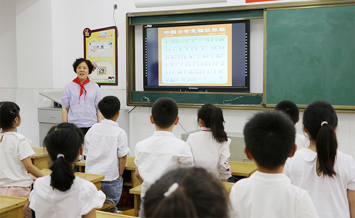 5月29日下午,扬桥小学党支部的四名党员教师共同开设了一节微党课,他们面向的不是党员教师,而是刚刚加入少年先锋队的新队员。