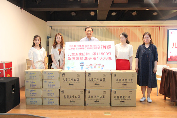 江苏盈科生物制药有限公司向市幼儿园捐赠抗疫物资。6月3日下午,在泰州市红十字会的牵线下,在泰州市幼儿园举行了捐赠仪式。泰州市红十字会副会长梅有宏、泰州市教育局体育卫生艺术和国防教育处处长肖永刚、江苏盈科生物制药有限公司销售副总许建明、质量副总杨亚勇等出席捐赠仪式。