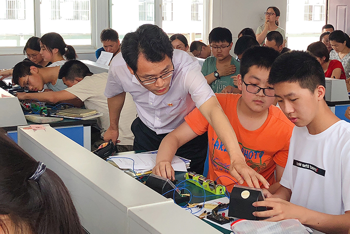 活动中,九龙实验学校校长朱雨红上了一节《测未知电阻的阻值》初三物理复习示范课。朱雨红从“伏安法测电阻”导入复习课,通过四个问题,引导学生思维层层递进,把测电阻的特殊方法串联起来。课堂上,朱雨红引导学生思考、表达、板书、练习,邀请学生到讲台扮演小老师,检验学习效果。