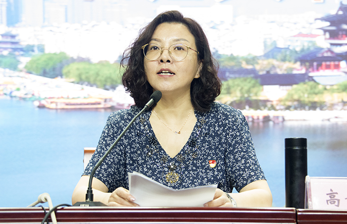 高静林代表区委教育工委副书记、区教育局副局长曹领娣讲话。她向新聘教师介绍了海陵教育的概况和现状。她指出,海陵教育还未显现出政府和百姓所期待的“首位度”,海陵教育高质量发展之路,才刚刚启程,海陵教育人注定都要做奔跑的人。她用习近平总书记的话语勉励大家 “教师既是学问之师,又是品行之师。”她希望新教师在教育教学工作中,始终坚持以区教育局提出的打造“有质量、有温度、有情怀、有担当”的海陵教育为价值导向,把“奋然为之”作为自己的精神底色,不断实践、及时反思,把难题当课题,以终身学习促个人专业发展,尽早在海陵区乃至泰州市名师体系里找到自己的位置。把初心和使命变成锐意进取、开拓创新的精气神和埋头苦干、真抓实干的能力,让“推进教育高质量发展”从说法变成做法,把承诺化为效果,为建设“幸福海陵”贡献教育力量!