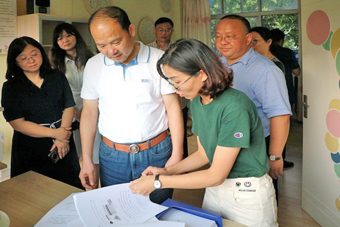检查组一行察看了校园环境、教室布置、创建宣传以及行思成书院、科学宫、农科院、体育馆、心理咨询室、羽毛球馆等专用场馆,查阅了创建资料,用发放问卷、随机抽查方式,调研师生对“社会主义核心价值观”“八礼四仪”“文明校园创建六好标准”的知晓情况,与校长、老师交流,深入了解学校未成年人思想道德建设工作。