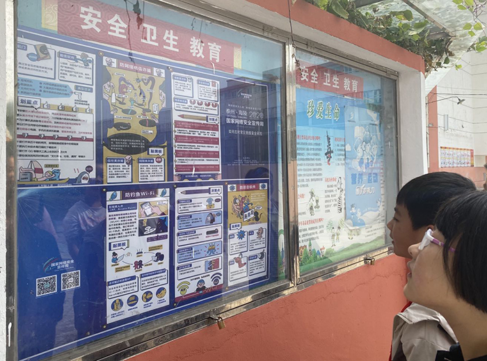 海陵学校、港口学校、里华初中、九龙实验学校、里华小学、九龙幼儿园等在校园内悬挂横幅,布置展板、电子屏滚动宣传标语,把网络安全知识画页张贴到橱窗,通过校园网络媒体平台、微信公众号等,把幽默漫画、真实案例推送给全校师生和家长。各校还利用黑板报,图文并茂地向师生展示识别电信诈骗、勒索软件、钓鱼网站的方法,开展“网络安全知识”讲座,主讲人用形象生动的漫画图片,具体鲜活的事例宣传网络安全知识。近50分钟的讲座,孩子们认真聆听,积极思考、踊跃答题,懂得了不在网上泄露自己的姓名、年龄、学校、家庭地址、手机号码等个人信息,没有监护人的允许不与任何网上认识的人见面,远离虚幻网络,把更多精力用在好好学习上。此外各班还召开主题班会深入宣传,营造了全校上下共同关注、支持、参与网络安全宣传的良好氛围。