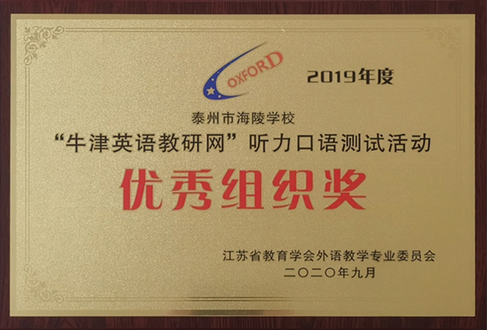 日前,江苏省牛津英语教研网站公布了2019年度英语听力口语测试活动“优秀组织奖”名单,泰州市海陵学校榜上有名。