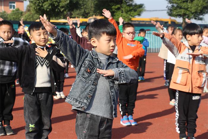 为了迎接本次比赛,各班师生高度重视,充分利用体育课及课外活动时间积极训练,体育老师精心指导,规范学生的做操动作,班主任跟班督查,确保做操质量。校园里经常能看见师生们刻苦训练的身影。