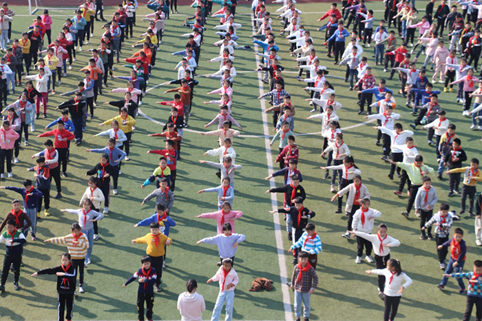 为进一步推进小学生阳光体育运动,增强学生体质,落实“每天锻炼一小时”的要求。11月11日,里华小学举行广播体操比赛,全校18个班级全部参加了比赛。