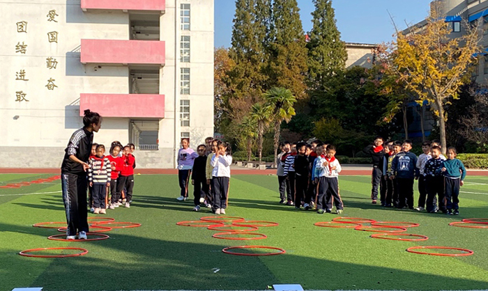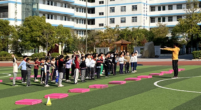 活动在泰州市实验小学青年路校区举行,20余名小学体育教师参加了活动。活动中,实验小学新入职的孙同辉、张瑞敏两位老师执教相同教学内容——二年级的立定跳远。两位老师用愉快的音乐辅助教学,为学生创设了良好的教学情境,激发了学生的学习兴趣。
