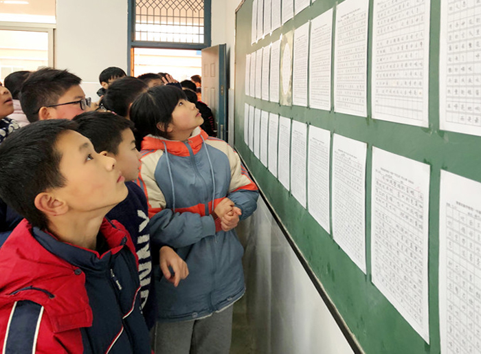 11月底,智堡实验学校举办了初一年级硬笔书写大赛,学校共收到学生书写作品248件,经评选,有30件优秀作品脱颖而出,学校又邀约他们写了更好的作品,最终有57件书写作品在学校展出,供全校同学参观欣赏。