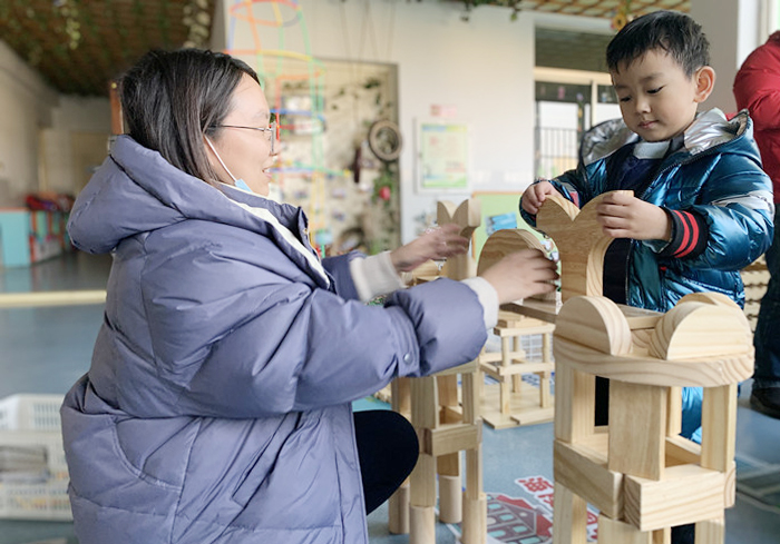 经东分园大三班建构的“城市综合体”有“亭”、有“塔”、有“桥”,有“水”、有“花”、有“树”,规模“宏大”,得到老师们的一致称赞。家长黄苏青说:“今天参加建构活动,我看到了小朋友超强的动手能力,他们的奇思妙想与成人相比有过之而无不及。可我们在日常的家庭教育中,许多事都替他们包办了,实在是压抑了他们的积极性,扼杀了他们创造力生成的机会。今后应当积极鼓励孩子们自己能做的事自己做,让他们在做事实践中感悟、成长,发展手脑机能,这样对他们才有益处。”