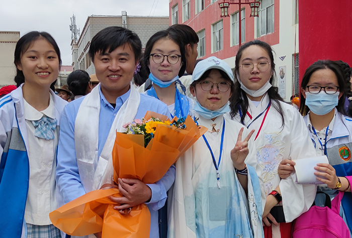 沈慧老师和西藏的孩子们在一起
