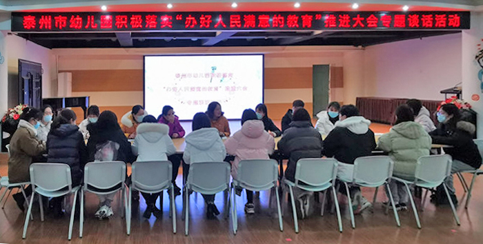 泰州市幼儿园的三个园区同时举行“办好人民满意教育”推进会专题谈话活动。老师们围绕大会提出的 “孺子牛、拓荒牛、老黄牛”精神,结合自身的工作实际,谈体会、说感受、表决心。教研室副主任姚雅雯老师说,这次大会鼓舞人心,令人振奋,极大地增强了我们一线老师加油奋进的信心。大会上优秀教师的事迹令人感动,工作中总有疲倦和自我怀疑的时候,但是从优秀教师的身上我重温了教育初心,他们对待教育工作的理想信念使我深受教育。教师的肩上扛着孩子的未来和国家的希望。我们要乘办好人民满意教育推进会的春风,立足岗位,勇于担当,争做“四有”好老师。