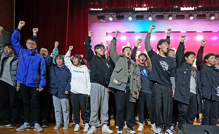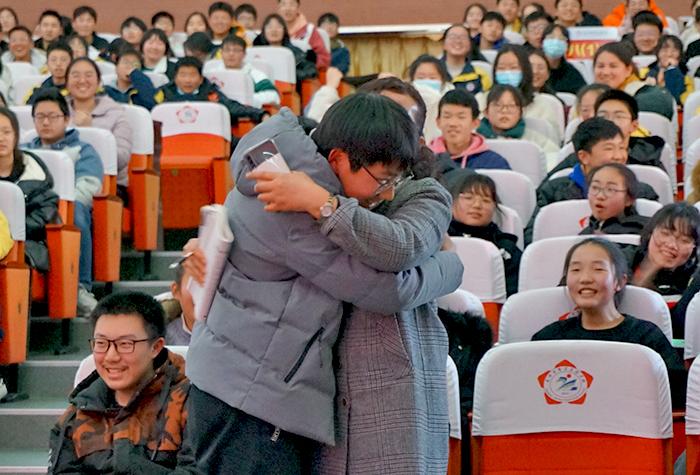 两个半小时的演讲报告会高潮迭起,掌声不断,传递着奋斗的力量,给广大学子以深深的震撼。同学们心中的目标更加确定,奋斗的意志更加顽强。在韩朝彬老师的鼓舞下,多位同学勇敢地上台,大声地说出自己的奋斗目标,表示一定会树立必胜信心,发奋图强,努力拼搏,以优异的成绩回报父母和老师。