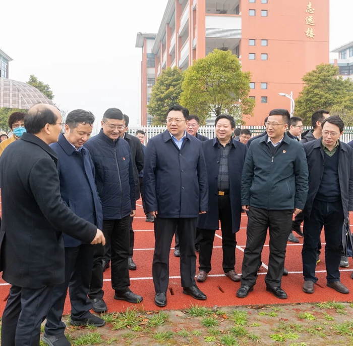区委书记孙群督查扬桥小学田径场建设工作 来源:扬桥小学 作者:黄佳阳 发布时间:2021-03-12 浏览次数: 次 【字体:小 大】 3月11日上午,区委书记孙群到泰州市扬桥中心小学督查基础设施项目。他走进学校操场,详细了解田径操场建设及后续草皮铺设工程进展情况。目前,400米塑胶跑道已建成并投入使用。 孙群指出,幸福海陵呼唤幸福教育,幸福教育成就幸福海陵,一定要以超强的气魄和力度推进校园设施建设,为师生提供最优的硬件条件,让校园成为海陵最美的风景。 副区长孙佳玲、肖六林,教育工委书记、局长姜小军等陪同。 分享到: 【打印正文】 相关内容