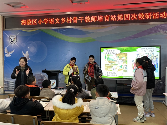 3月16日下午,海陵区小学语文乡村骨干教师培育站在泰州市实验小学青年路校区举行第四次教研活动。活动的目的是帮助老师们探寻符合儿童阅读规律的古典文学教学方法。培育站导师、区教师发展中心小语研训员王文静主持本次活动。