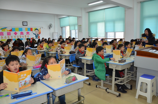 课堂上,上课的老师们运用多媒体手段教学,充分调动学生的学习积极性。观摩的家长和孩子一同听课,观察孩子们的种种表现。